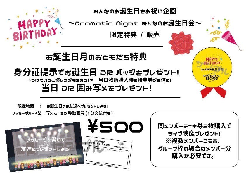 チケット代¥1000以上のイベントをお目当て入場にて1枚プレゼント